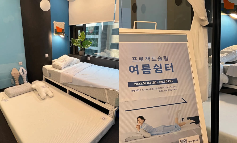 네, 그 점이 패스트파이브를 쓰면서 가장 만족한 부분입니다. 사실 사무실 내에 상설 쇼룸을 갖추려면 공간 비용 부담이 크잖아요. 저희는 패스트파이브의 다양한 공용 공간을 활용해 여름 시즌을 겨냥한 단기 ‘여름 쉼터’ 형태의 팝업형 체험존을 운영했습니다.