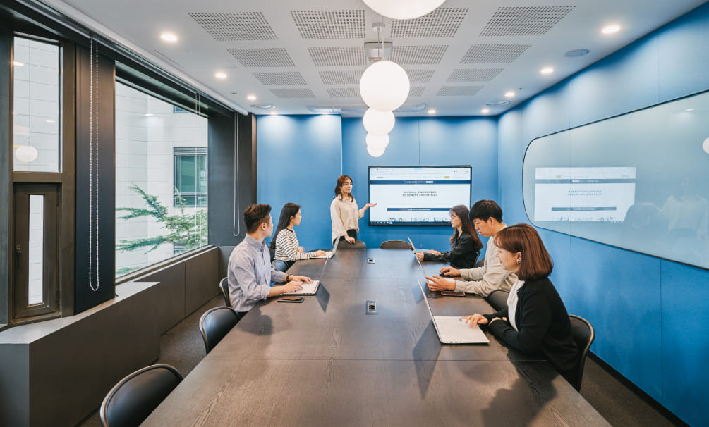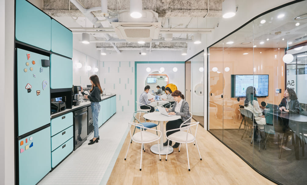 또한 업무 공간과 라운지의 밸런스가 좋습니다. 업무에 깊게 몰입하다가도, 필요할 땐 라운지로 나와 외부 미팅을 하거나 다양한 아이디어를 나누는 등 공간 효율성 측면에서 만족하며 사용하고 있습니다.