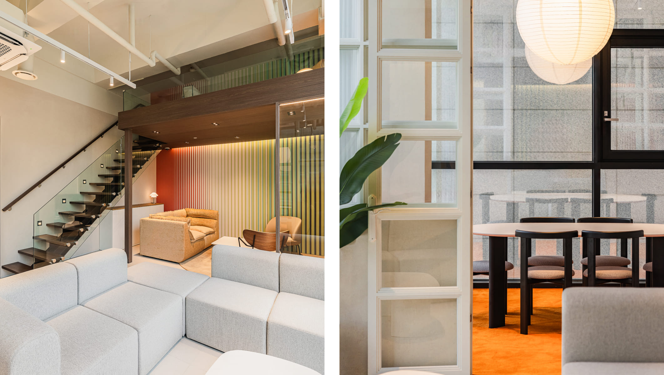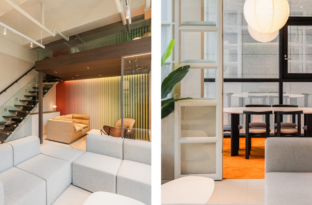 한강과 선유도의 기운을 가득 담은 당산점은 볕이 잘 들어 내부 분위기가 따뜻하고 쾌적합니다. 높은 층고와 독특한 복층 구조를 통해 일반적인 사무실에서 느낄 수 없는 흥미롭고 개방적인 공간감을 제공합니다. 이는 마치 주택의 개성을 살린 듯한 유니크함으로 다가옵니다. 여기에 올리브와 오렌지 컬러의 감각적인 포인트를 더하여, 마치 잘 꾸며진 집처럼 공간 곳곳에 예술적인 생기를 불어넣고 영감을 자극합니다. 특히 색감이 매력적인 다이닝룸은 예약 없이도 활용할 수 있어 당산점 멤버들의 높은 만족도를 자랑하는 시그니처 공간입니다.