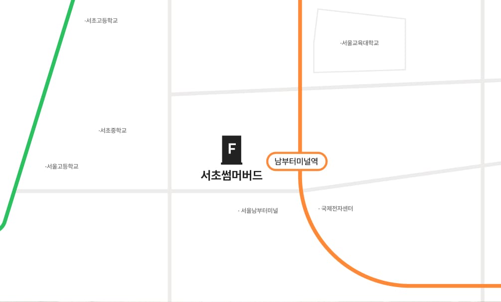 서초썸머버드점은 양재천, 서리풀 공원 등 초록을 누릴 수 있는 공간이 매우 가까워요. 인근에 우면산도 찾아볼 수 있죠. 이런 자연 가득한 입지에 더해, 지상 1층부터 11층까지 패파이기 때문에 사무공간이 대부분으로 차분한 분위기를 느끼실 수 있습니다.