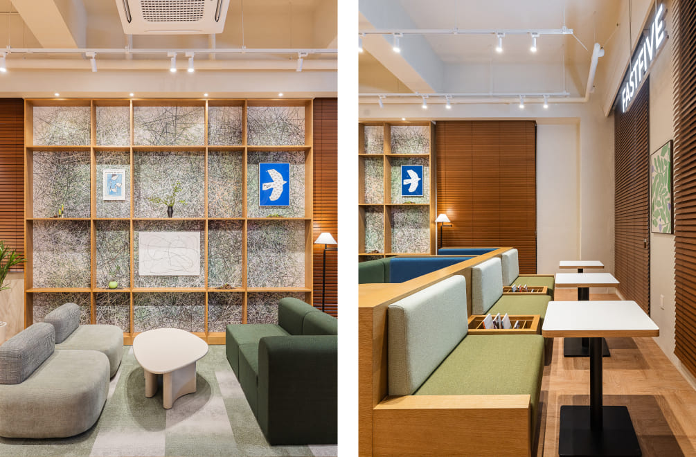 패스트파이브 서초썸머버드점은 소규모 기업을 위한 사무실이 많이 준비되어 있습니다. 라운지는 개방감을 느낄 수 있도록 디자인 했다고 해요. 하지만 일 할때는 “따로 또 같이”가 핵심이잖아요. 집중 업무를 위한 공간도 곳곳에 숨어 있습니다.
