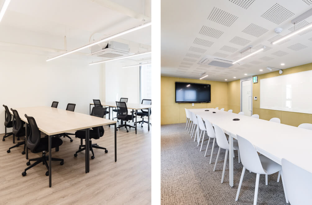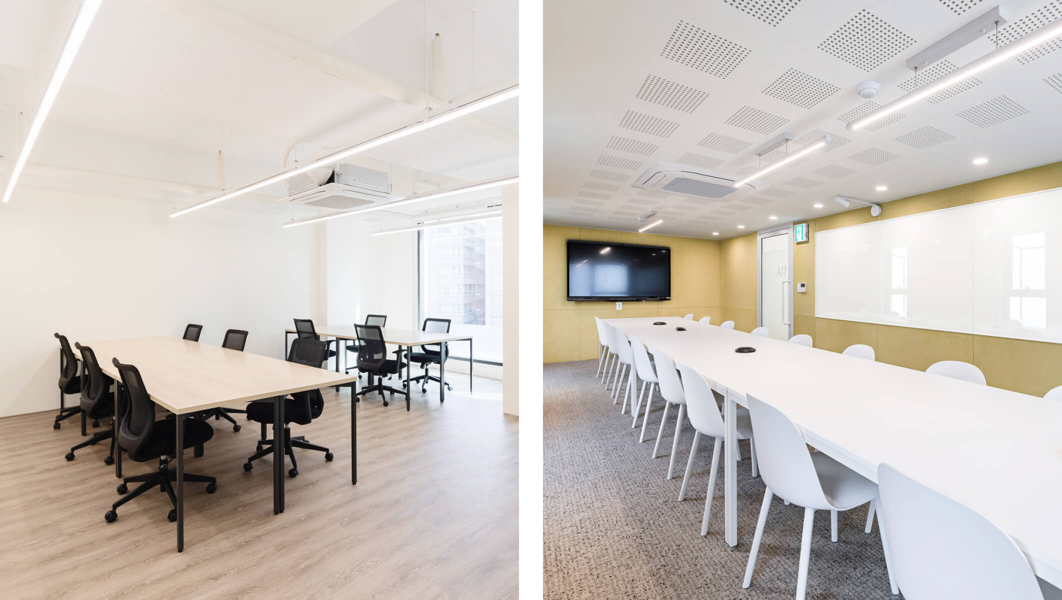 전체적으로 새 건물이라 깨끗한 컨디션이고, 소규모의 다양한 기업이 모이는 만큼 회의실이 모자라는 일이 없도록 신경 썼습니다. 서브 라운지나 각 층의 미팅룸을 이용해 보세요